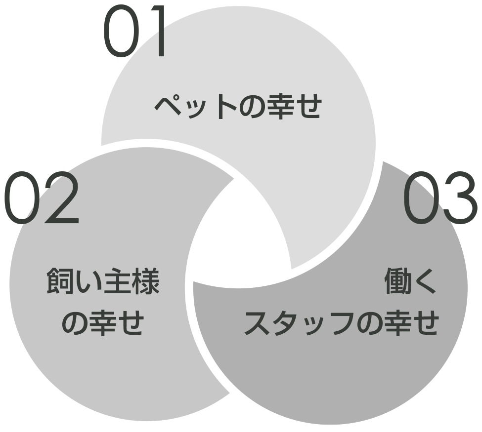 皆様のかけがえのない家族である動物の命を守り、笑顔の暮らしを支え続けていけますよう、スタッフ一人一人が自分の仕事に誇りを持ち、日々働いています。幸せのお手伝いをさせていただくことでご満足いただき、それがまた次に当院を選んでいただくことにつながる。信頼していただけたことは私たちスタッフにとってこの上ない喜びになり、より良いサービスをご提供する原動力になる―。そんな好循環で、誰にとっても働きやすい職場づくりを目指しています。