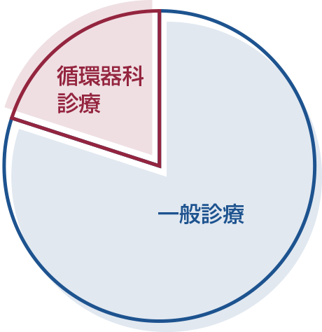 当院は心臓病に強みを持つクリニックとして、全体の2割が循環器診療の患者様となっています。昨今ではおかげさまで近隣だけでなく周辺他県の病院様からも数多くご紹介をいただいており、症例数が増えることで知見や臨床実績もより確かなものになり、新たな患者様への診療に還元できる良い循環が生まれています。